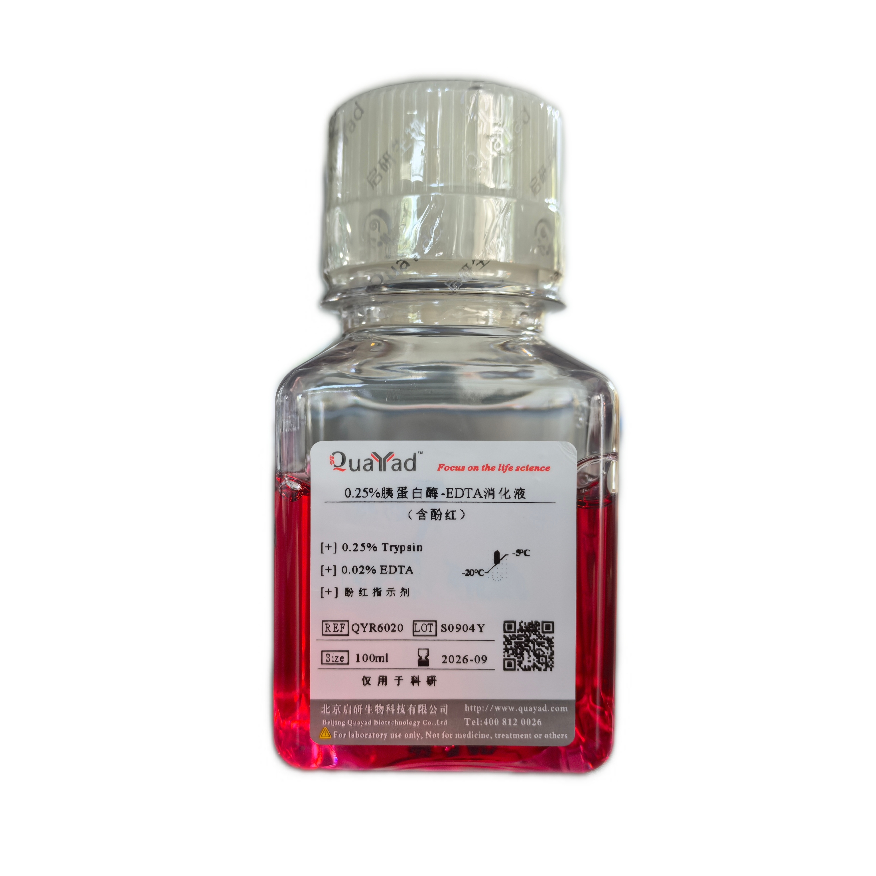 0.25%胰蛋白酶(胰酶)-EDTA消化液(含酚红) (QYR6020)