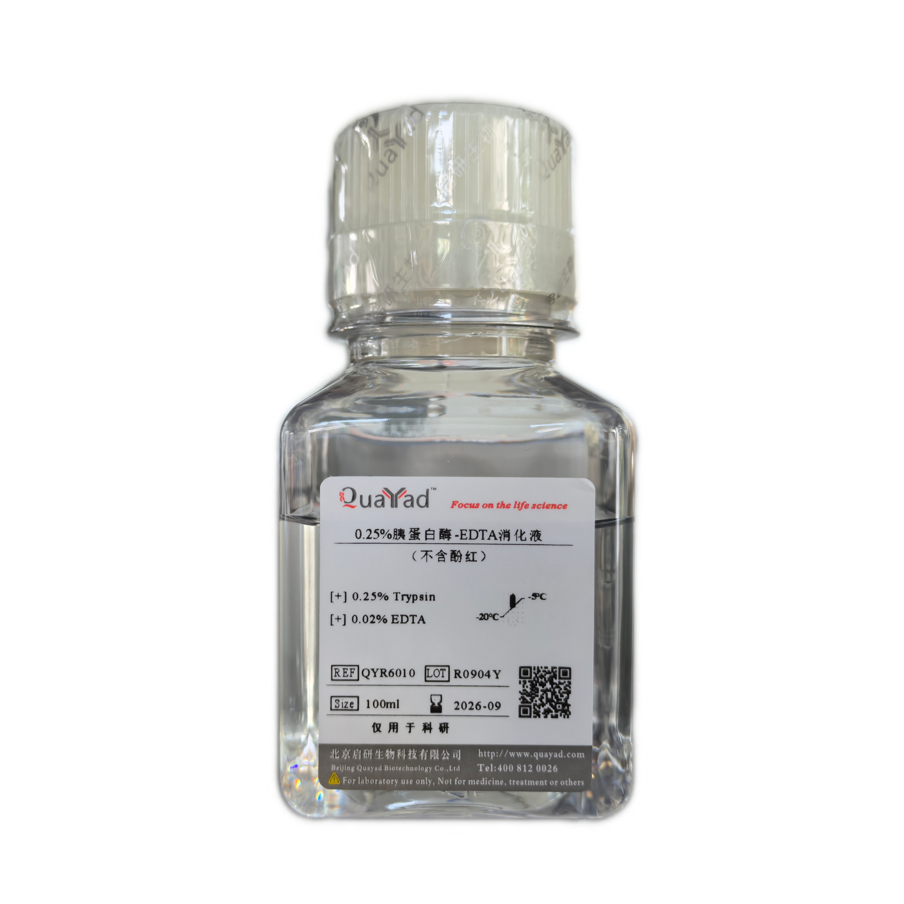 0.25%胰蛋白酶(胰酶)-EDTA消化液(不含酚红) (QYR6010)