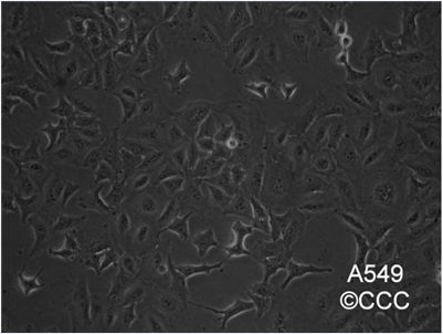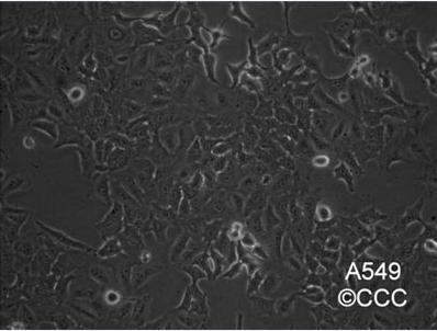 人非小细胞肺癌细胞,来源于58岁的白人男性肺癌组织,由D.J. Giard等人建立于1972年。M. Lieber发现A549可以通过胞苷二磷酸胆碱途径合成高比例的不饱和脂肪酸卵磷脂。
