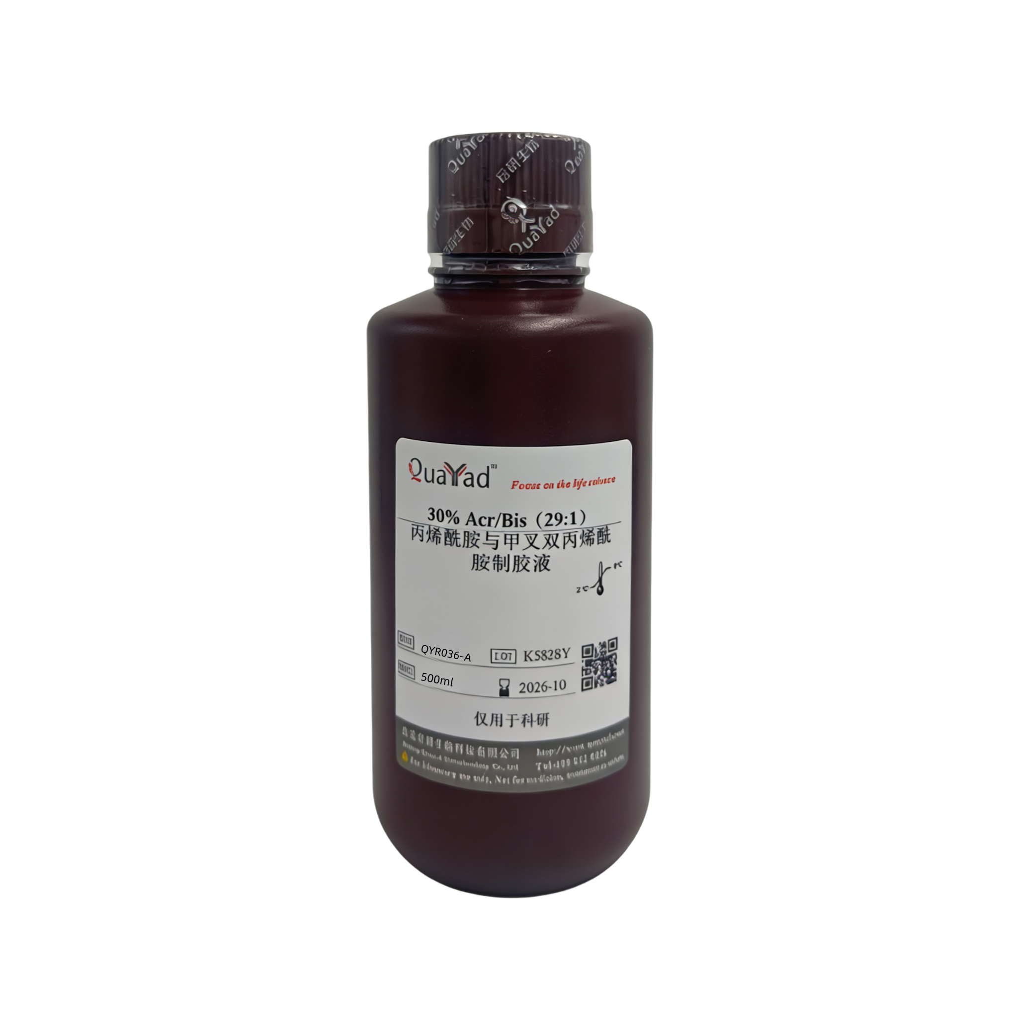 30% Acr/Bis 制胶液(29:1)是一种在SDS-PAGE电泳中配制凝胶的常用溶液。常用于SDS-PAGE电泳,WB等实验。用于蛋白质的分离、纯化、鉴定。