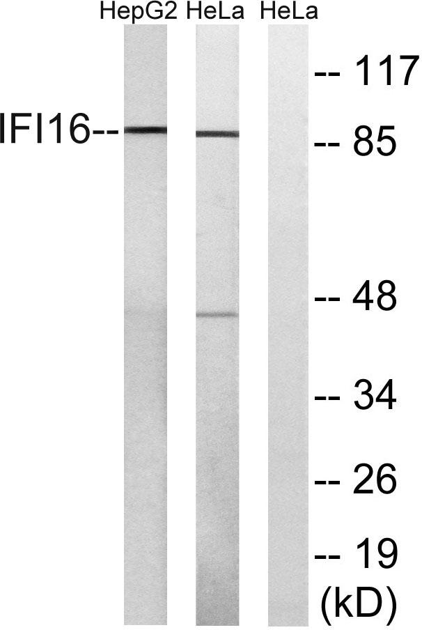 Specificity:IFI-16 Polyclonal Antibody detects endogenous levels of IFI-16 protein.