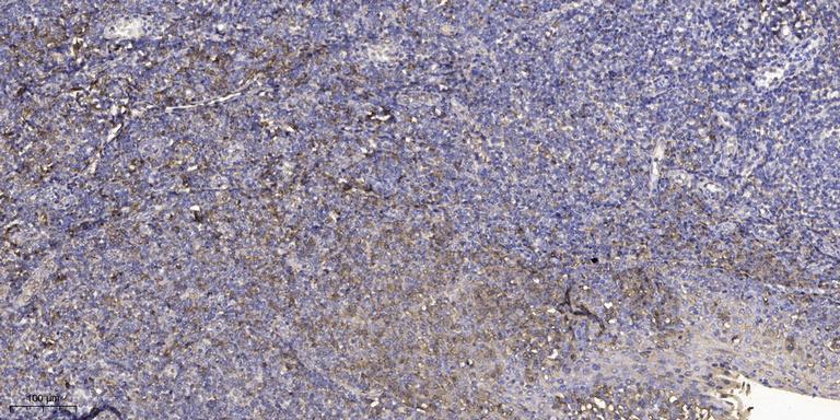 Purification:The antibody was affinity-purified from rabbit antiserum by affinity-chromatography using epitope-specific immunogen.