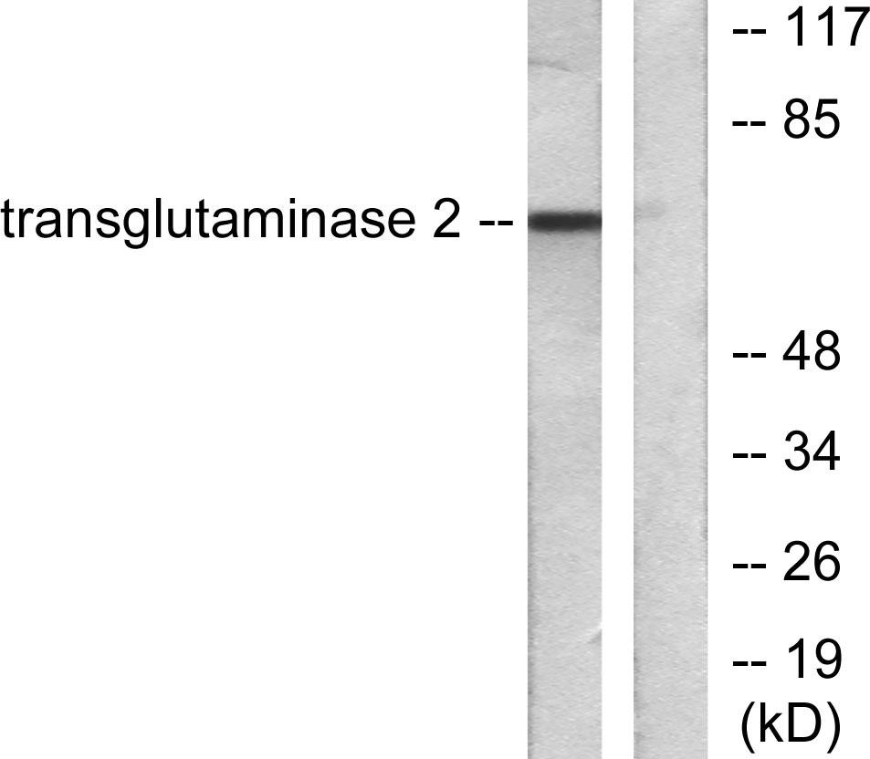 Immunogen:The antiserum was produced against synthesized peptide derived from human Transglutaminase 2. AA range:1-50