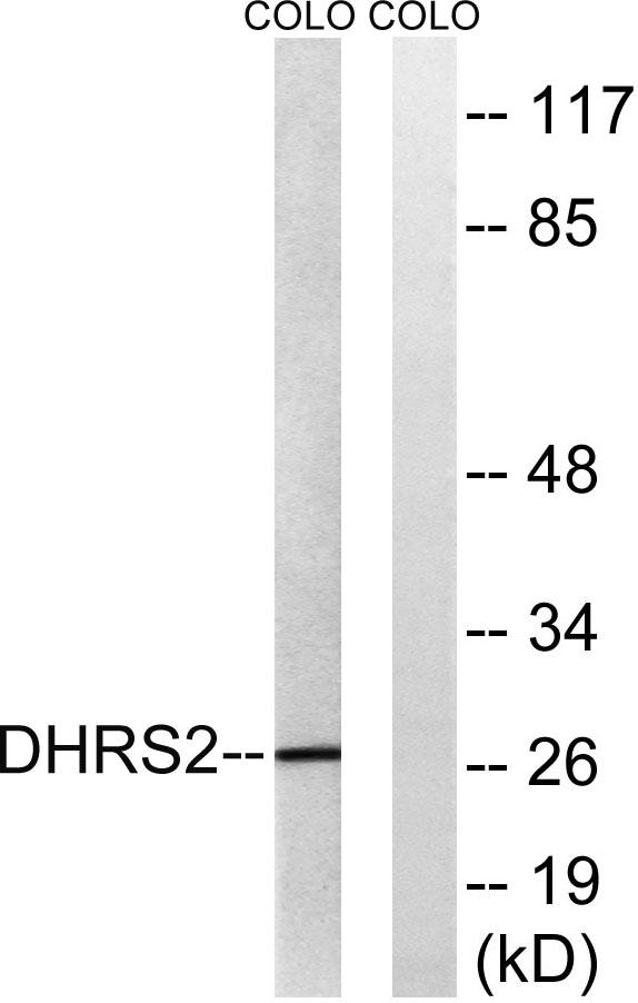 Specificity:DHRS2 Polyclonal Antibody detects endogenous levels of DHRS2 protein.
