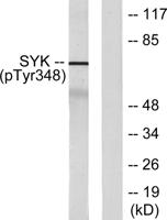 Immunogen:The antiserum was produced against synthesized peptide derived from human SYK around the phosphorylation site of Tyr348. AA range:314-363