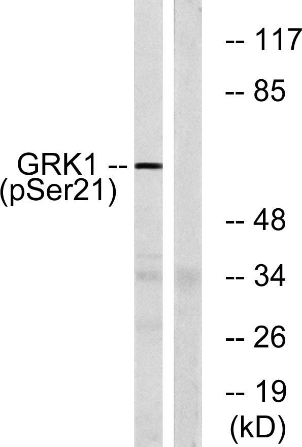 Immunogen:The antiserum was produced against synthesized peptide derived from human GRK1 around the phosphorylation site of Ser21. AA range:6-55