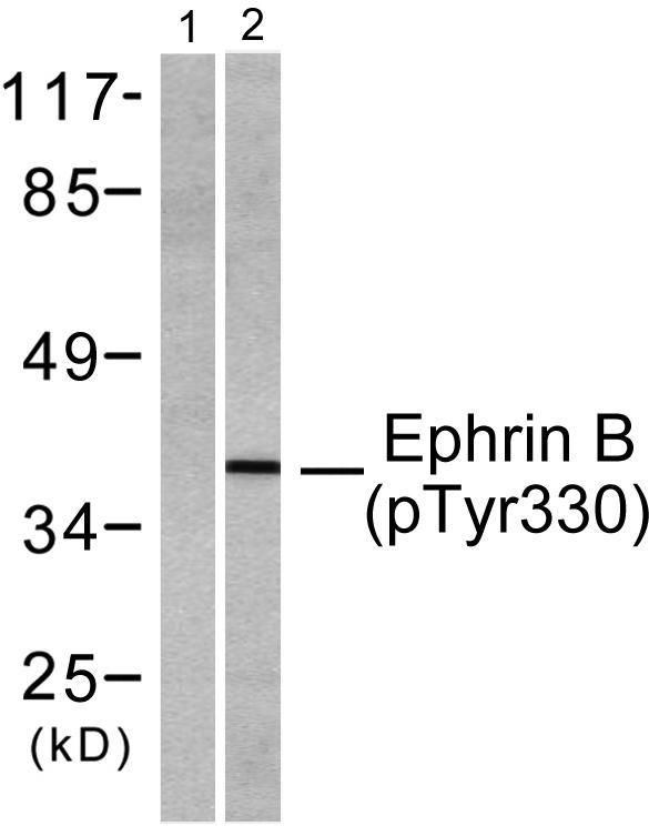 Specificity:Phospho-Ephrin-B1/2 (Y330) Polyclonal Antibody detects endogenous levels of Ephrin-B1/2 protein only when phosphorylated at Y330.