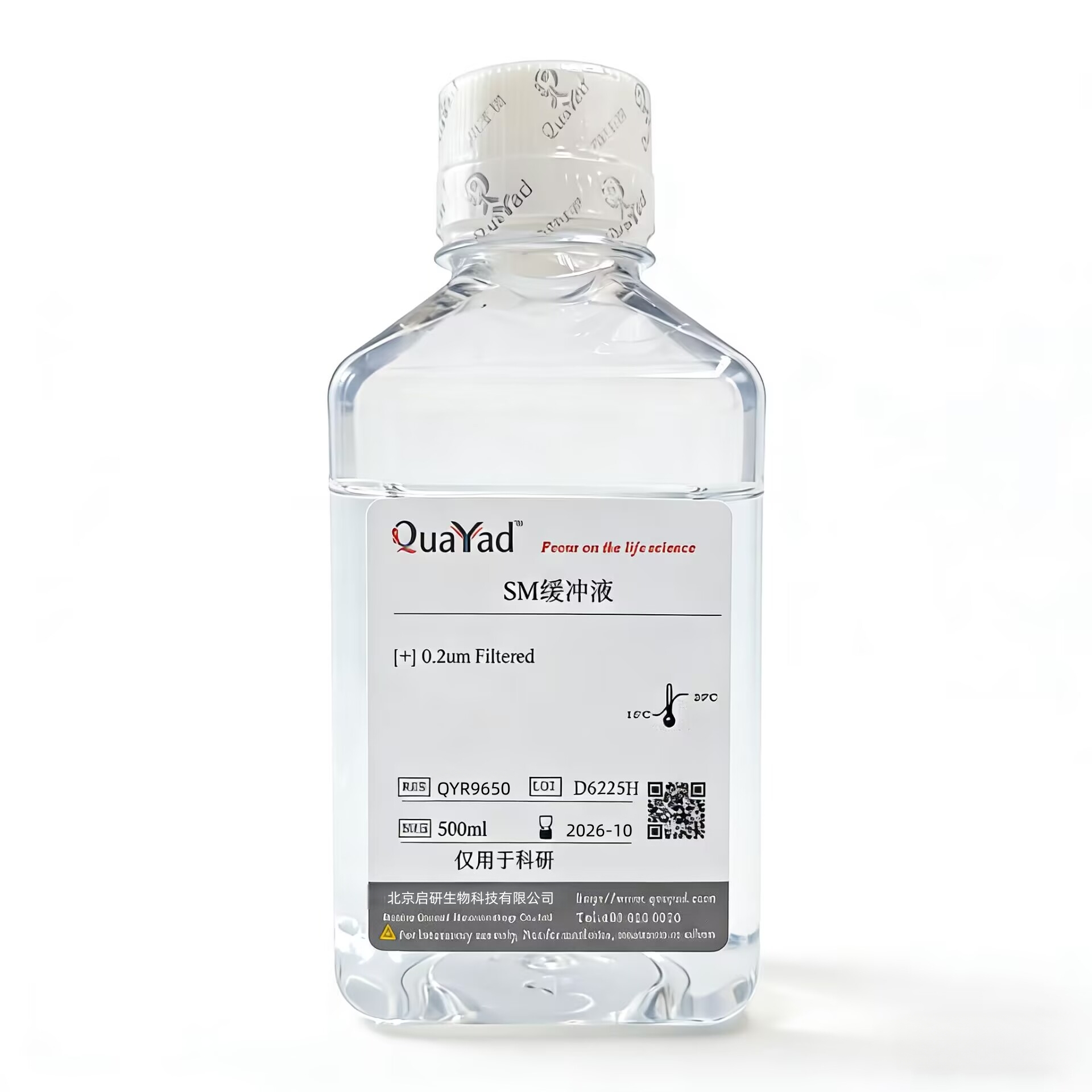 λ噬菌体是最早使用的克隆载体,其基因组是长度约为50kb的双链DNA分子,其在宿主细胞由两种生活途径:1、裂解生长:环状DNA分子在细胞内多次复制,合成大量噬菌体基因产物,装配成噬菌体颗粒,裂解宿主菌再进行下一次感染;2、溶源性生长:感染细胞内λ噬菌体DNA整合到宿主菌染色体DNA中与之一起复制,并遗传给子代细胞,宿主细胞不裂解。SM缓冲液(sodium chloride magnesium sulfate buffer)主要由硫酸镁、氯化钠、明胶等组成,经高压灭菌,为无菌溶液,同Amresco-J614产品,主要用于稀释和保存λ噬菌体原种。