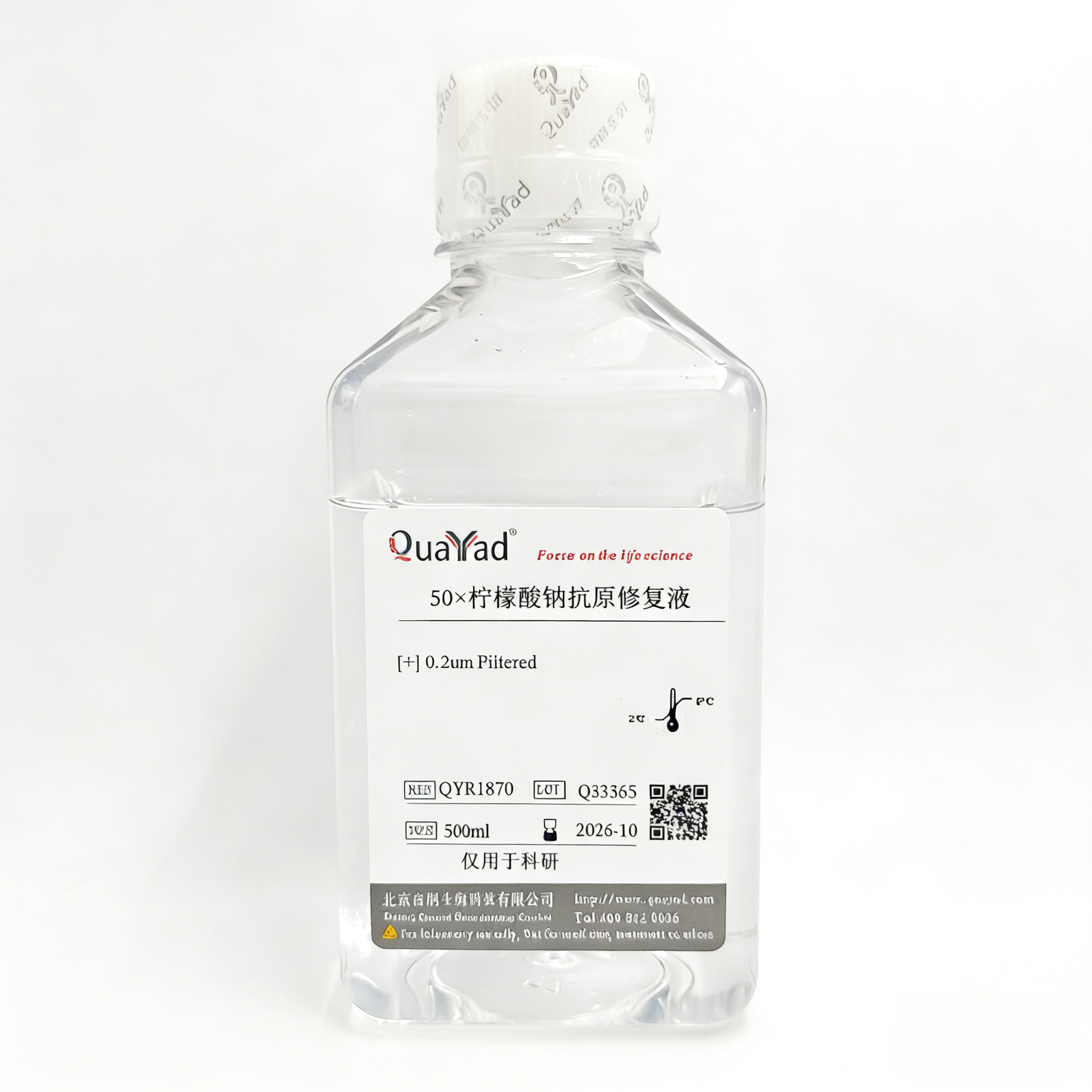 柠檬酸钠抗原修复液(Citrate Antigen Retrieval Solution)是一种最常用的抗原修复液,可以用于石蜡切片、冰冻 切片等样品使用多聚甲醛、甲醛或其它醛类试剂固定后的抗原修复。