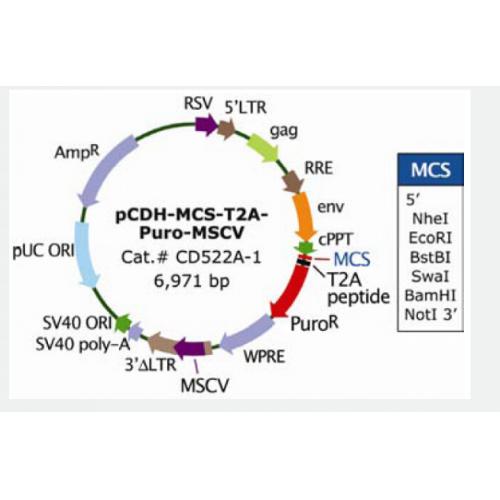 载体名称:pCDH-MCS-T2A-Puro-MSCV